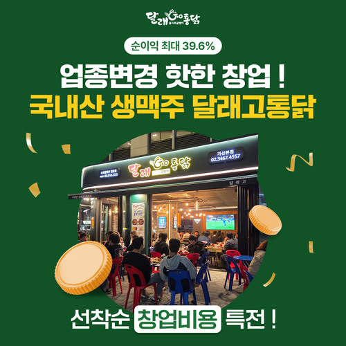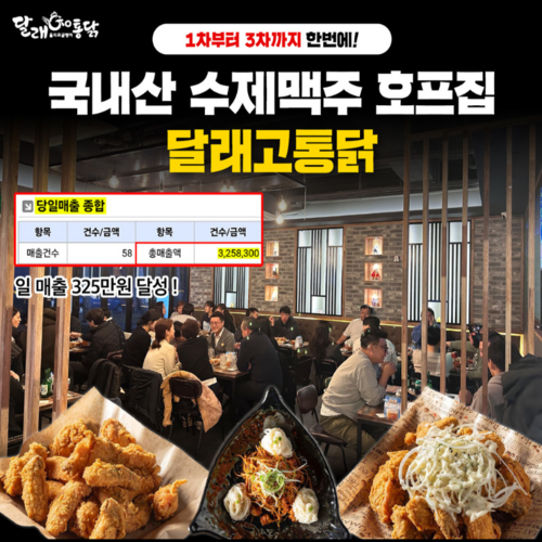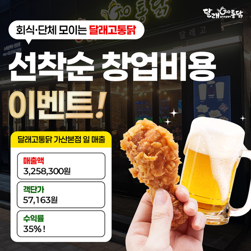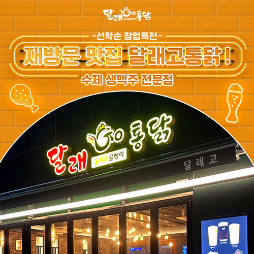 달래고통닭만의 차별화된 메뉴와 컨셉을 바탕으로 고객에게 안전한 먹거리만을 제공하며 다양한 매출지원 프로모션으로 성공 창업을 위한 지원을 아끼지 않습니다.