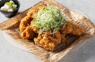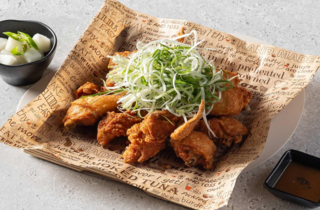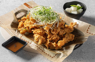 물파우다와 건파우다로 튀겨낸 치킨위에 파채와 겨자소스를 곁들인 맛있는 파닭치킨